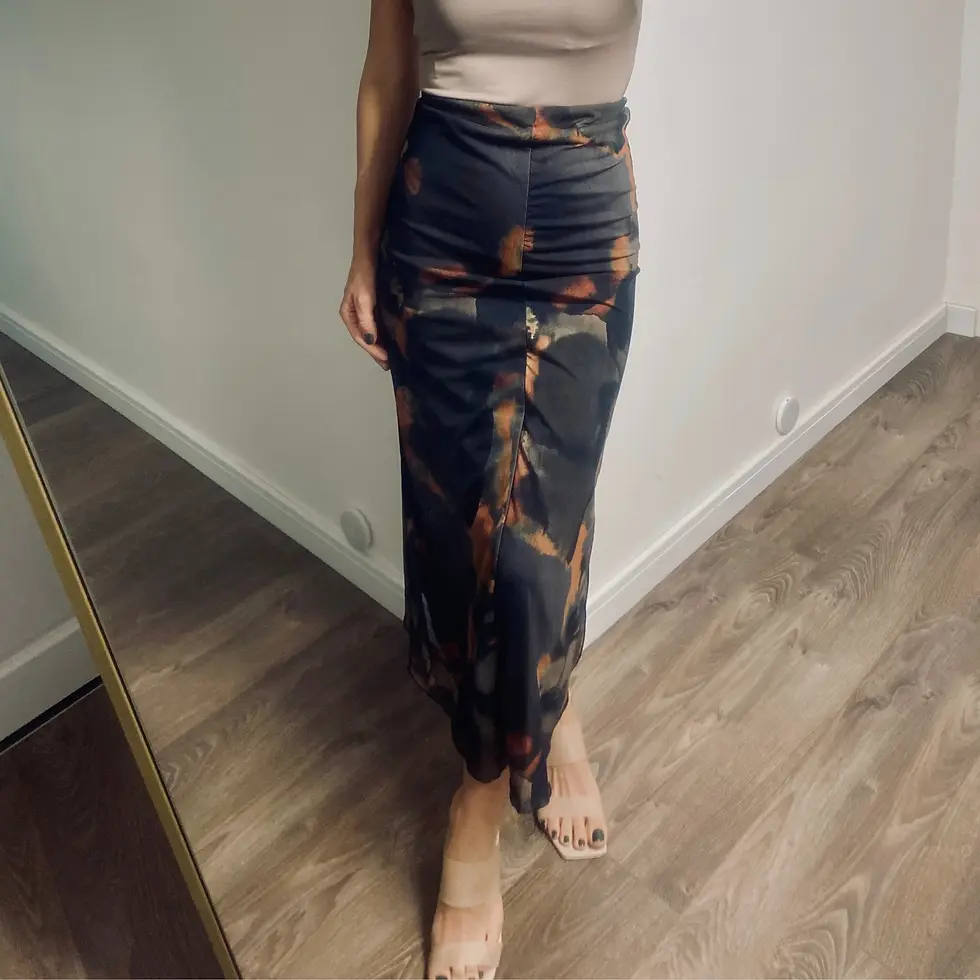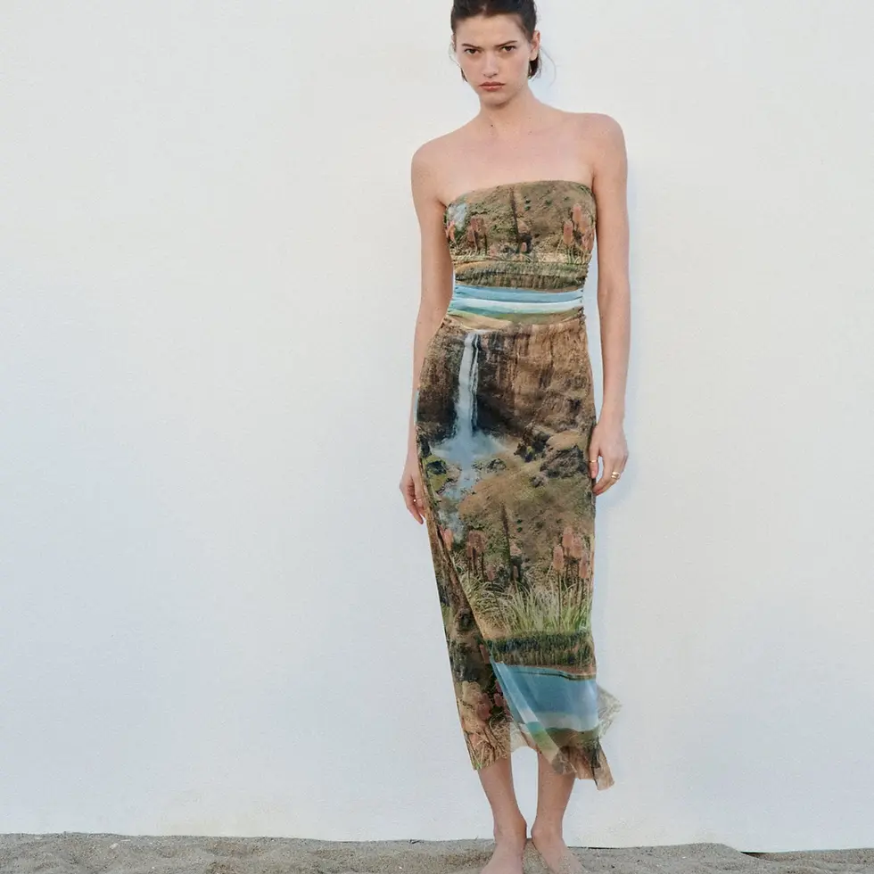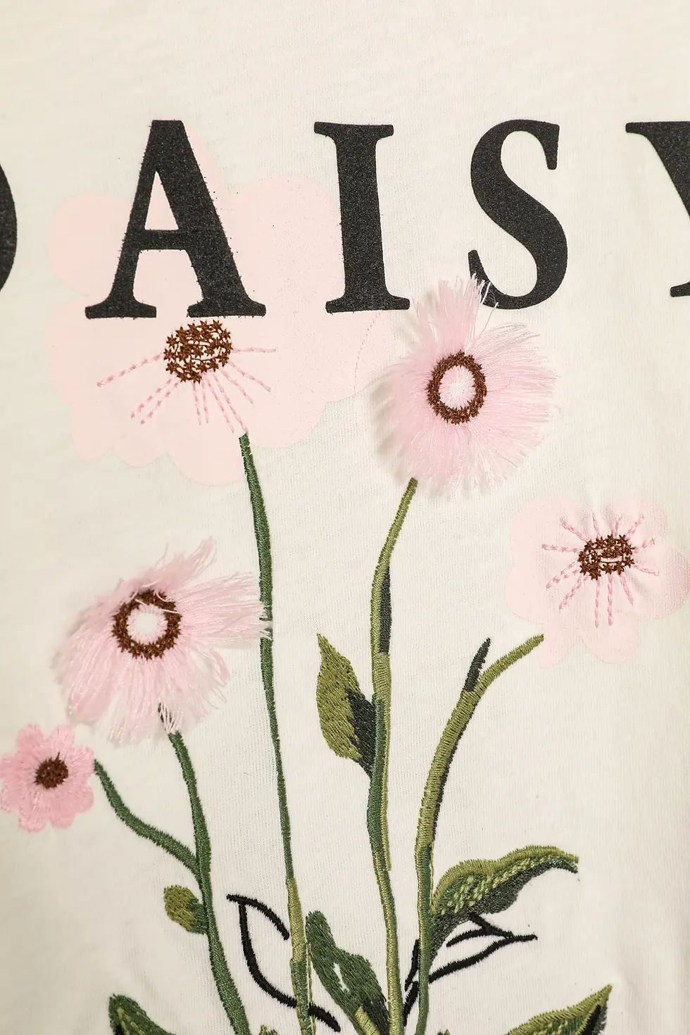 Püskül Çiçekli Yazı Baskılı Tişört Ekru
